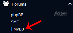 4. On the left side of your screen you should locate the "Forums" category. Click on it and then click on the "MyBB" link that will appear.