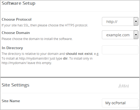 - Site Name: Enter the name of your website, such as "ocPortal".