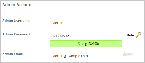8. Under the "Admin Account" field enter the following information: