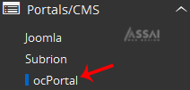 4. On the left side of your screen you should locate the "Portal/CMS" category. Click on it and then click on the "ocPortal" link that will appear.