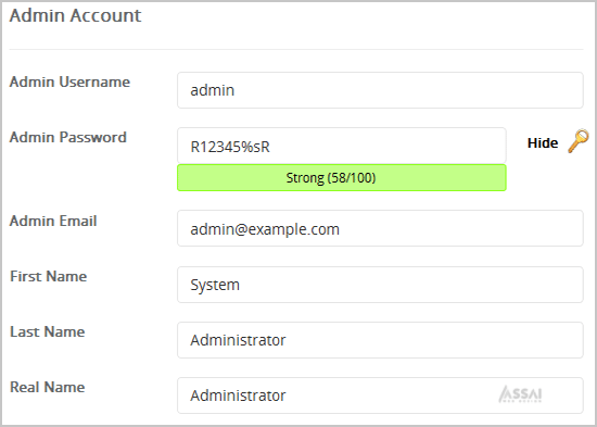 • Admin Username: The default username is "Admin" and the edit option is disabled.