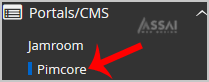 4. On the left side of your screen you should locate the "Portal/CMS" category. Click on it and then click on the "Pimcore" link that will appear.