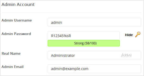 - Admin Username: Your new Saurus username (for security reason do not use the "Administrator" or the "Admin" username.)
